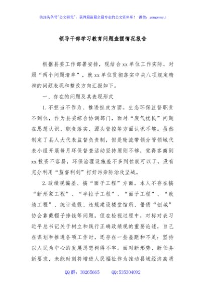 / 领导干部学习教育问题查摆情况报告