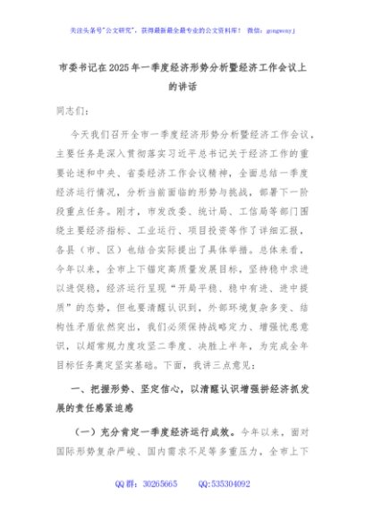 / 市委书记在2025年一季度经济形势分析暨经济工作会议上的讲话