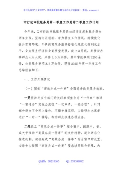 / 市行政审批服务局第一季度工作总结二季度工作计划