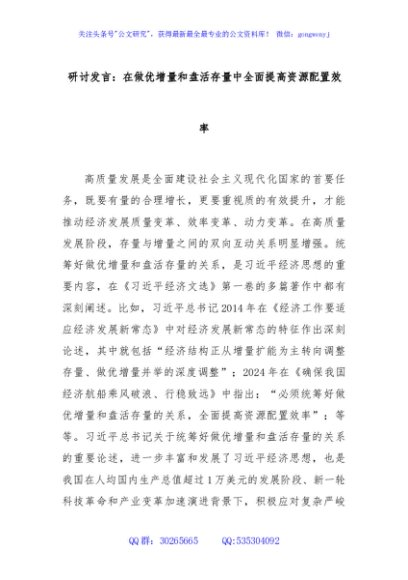 / 研讨发言:在做优增量和盘活存量中全面提高资源配置效率