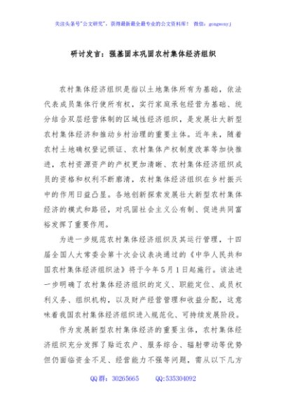 / 研讨发言:强基固本巩固农村集体经济组织