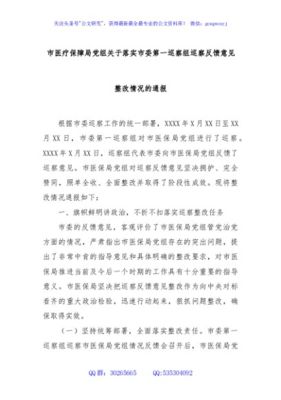 / 市医疗保障局党组关于落实市委第一巡察组巡察反馈意见整改情况的通报