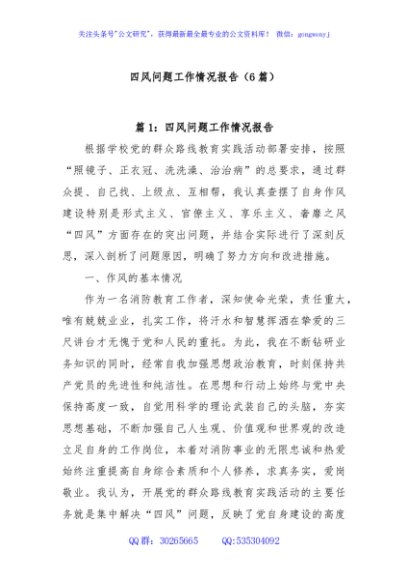 / (6篇)四风问题工作情况报告