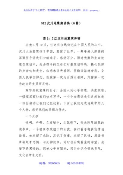 (6篇)512汶川地震演讲稿