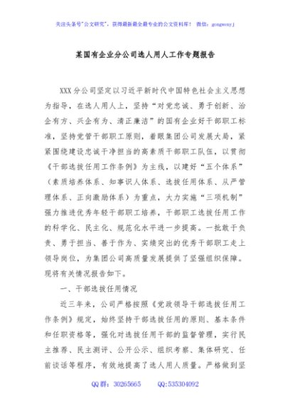 / 某国有企业分公司选人用人工作专题报告