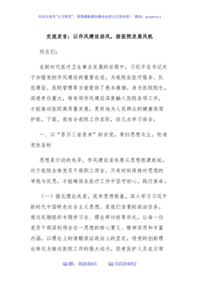 / 交流发言:以作风建设劲风,扬医院发展风帆