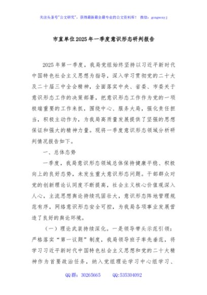 / 市直单位2025年一季度意识形态研判报告