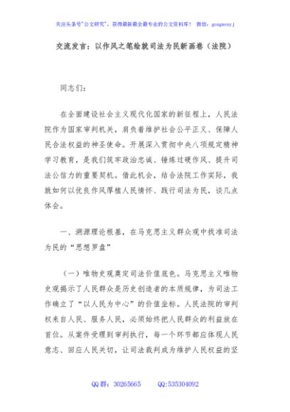 / 交流发言:以作风之笔绘就司法为民新画卷(法院)