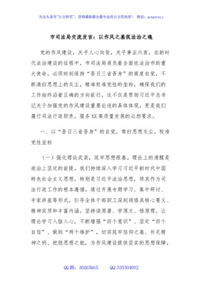 / 市司法局交流发言:以作风之基筑法治之魂