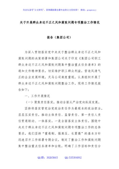 / 关于开展群众身边不正之风和腐败问题专项整治工作情况报告(集团公司)