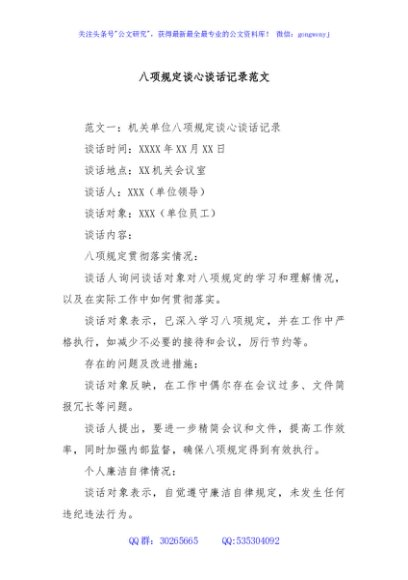 / 八项规定谈心谈话记录范文