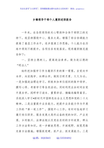 / 乡镇领导干部个人履职述职报告