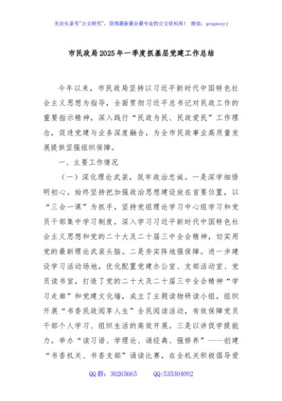 / 市民政局2025年一季度抓基层党建工作总结