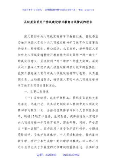 / 县纪委监委关于作风建设学习教育开展情况的报告