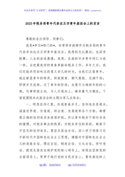 / 2025年税务局青年代表在五四青年座谈会上的发言