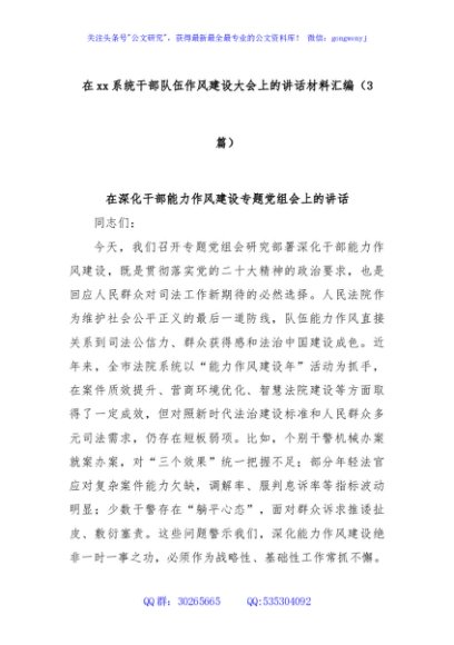 / (3篇)在xx系统干部队伍作风建设大会上的讲话材料汇编