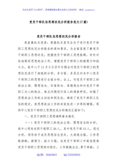 / (7篇)党员干部队伍思想状况分析报告范文