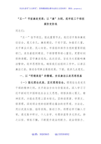 / “五一”节前廉政党课:以“廉”为纲,筑牢组工干部拒腐防变防线
