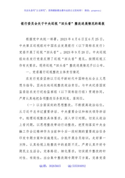 / 银行委员会关于中央巡视“回头看”整改进展情况的通报