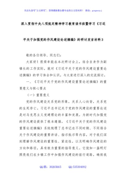 / 深入贯彻中央八项规定精神学习教育读书班暨学习《习近平关于加强党的作风建设论述摘编》的研讨发言材料3