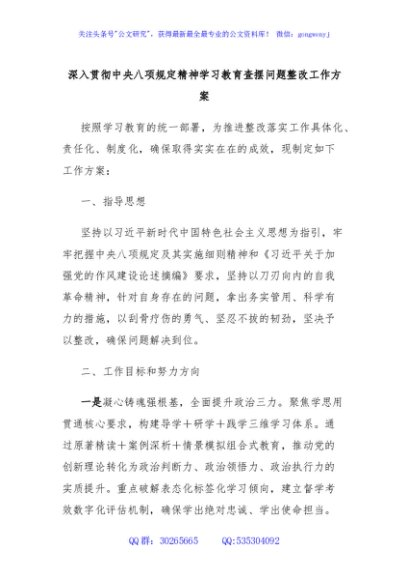 深入贯彻中央八项规定精神学习教育查摆问题整改工作方案