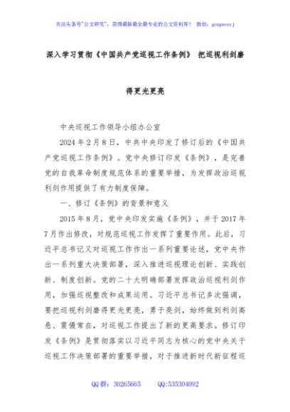 / 深入学习贯彻《中国共产党巡视工作条例》 把巡视利剑磨得更光更亮