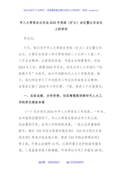 / 市人大常委会主任在2025年党组(扩大)会议暨主任会议上的讲话