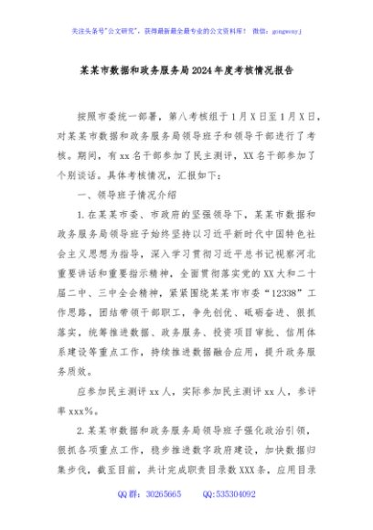 / 某某市数据和政务服务局2024年度考核情况报告