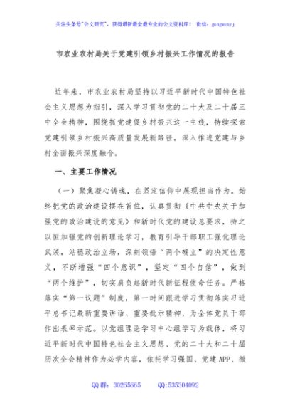 / 市农业农村局关于党建引领乡村振兴工作情况的报告