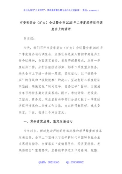 / 市委常委会(扩大)会议暨全市2025年二季度经济运行调度会上的讲话