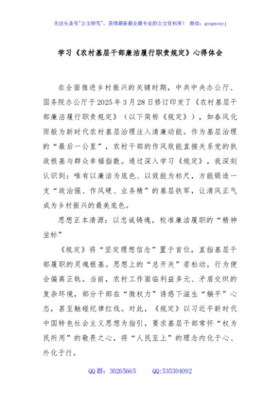 / 学习《农村基层干部廉洁履行职责规定》心得体会
