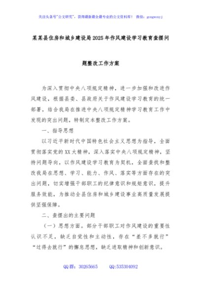 / 某某县住房和城乡建设局2025年作风建设学习教育查摆问题整改工作方案