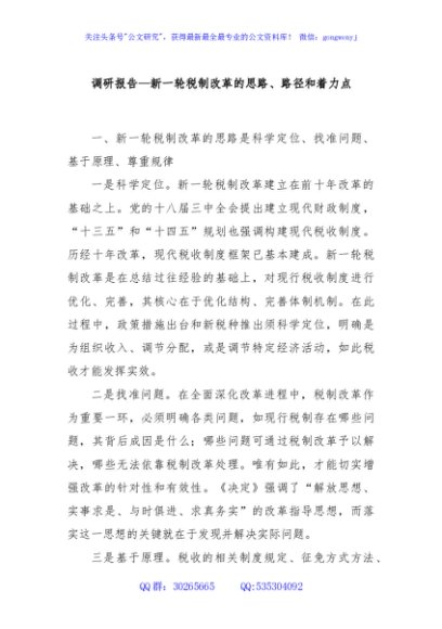 / 调研报告—新一轮税制改革的思路、路径和着力点