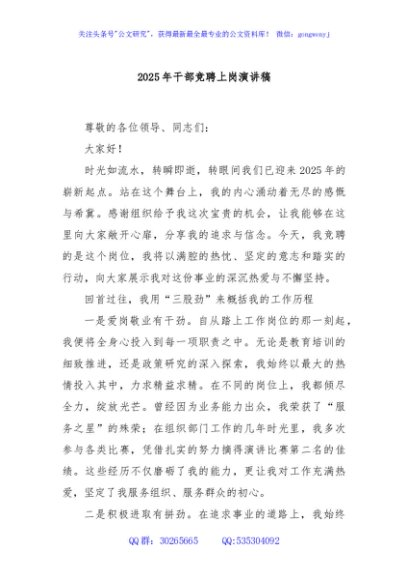 / 2025年干部竞聘上岗演讲稿