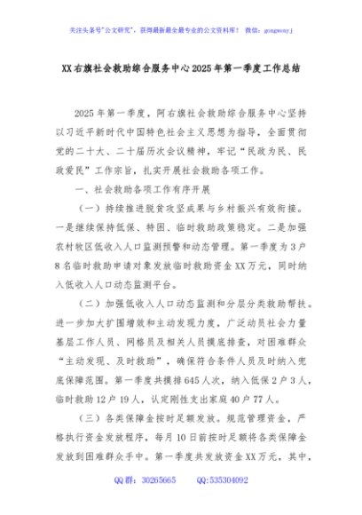 / XX右旗社会救助综合服务中心2025年第一季度工作总结