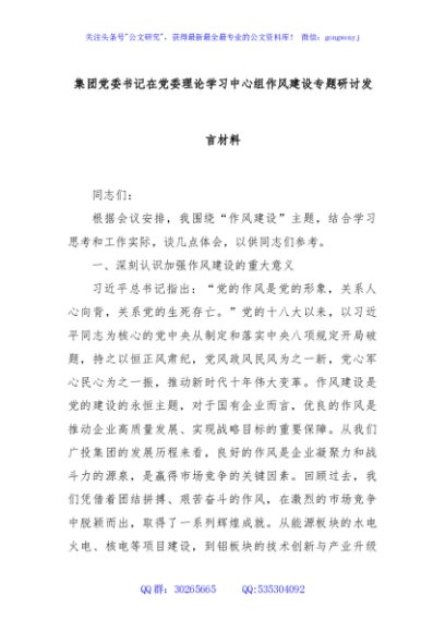 / 集团党委书记在党委理论学习中心组作风建设专题研讨发言材料