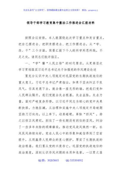 / 领导干部学习教育集中整治工作推进会汇报材料