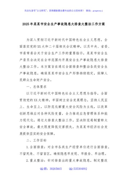 / 2025年某某市安全生产事故隐患大排查大整治工作方案