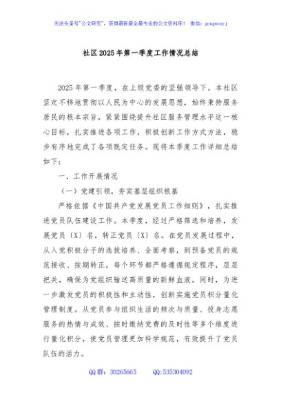 / 社区2025年第一季度工作情况总结
