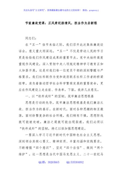 节前廉政党课:正风肃纪扬清风,担当作为启新程
