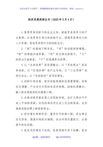 / 经济发展类排比句(2025年5月4日)