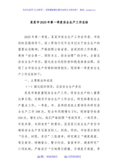 / 某某市2025年第一季度安全生产工作总结