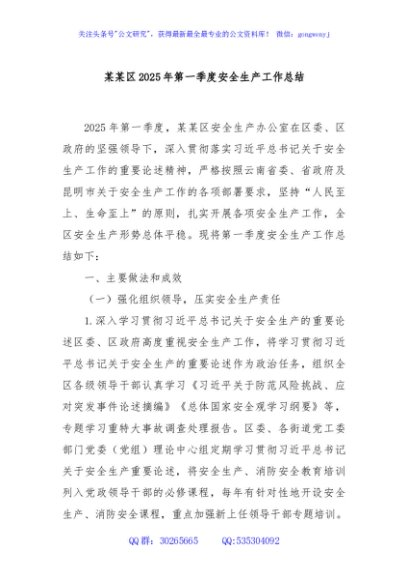 / 某某区2025年第一季度安全生产工作总结