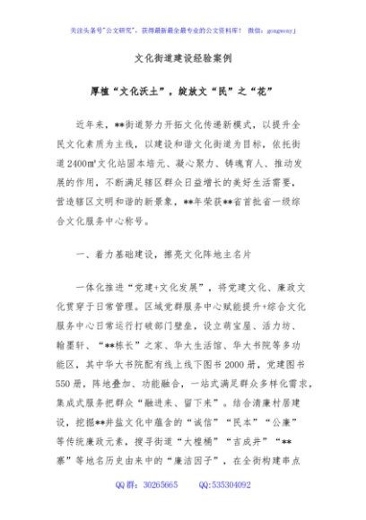 文化街道建设经验案例