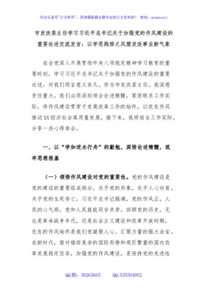 市发改委主任学习习近平总书记关于加强党的作风建设的重要论述交流发言:以学思践悟之风塑发改事业新气象