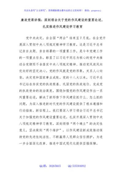 / 廉政党课讲稿:深刻领会关于党的作风建设的重要论述,扎实推进作风建设学习教育