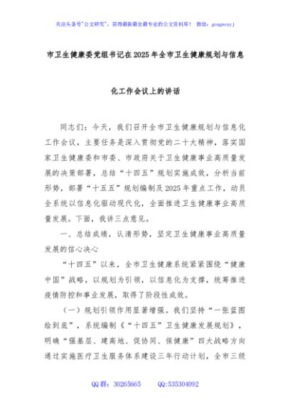 / 市卫生健康委党组书记在2025年全市卫生健康规划与信息化工作会议上的讲话