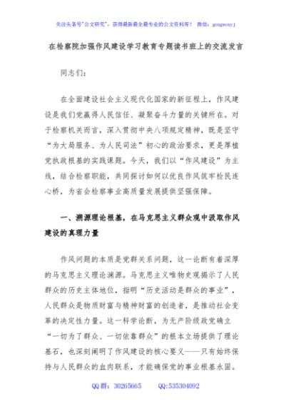 / 在检察院加强作风建设学习教育专题读书班上的交流发言