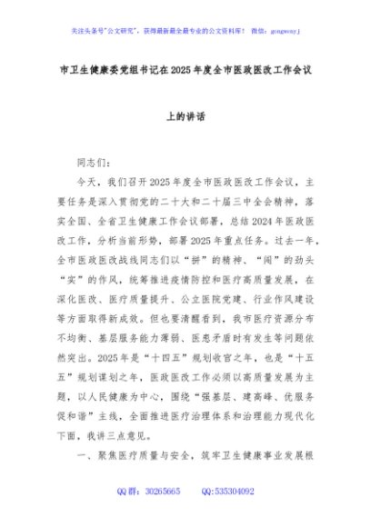 / 市卫生健康委党组书记在2025年度全市医政医改工作会议上的讲话