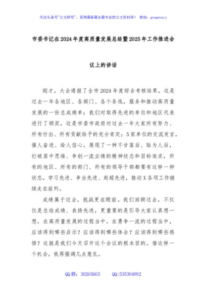 / 市委书记在2024年度高质量发展总结暨2025年工作推进会议上的讲话